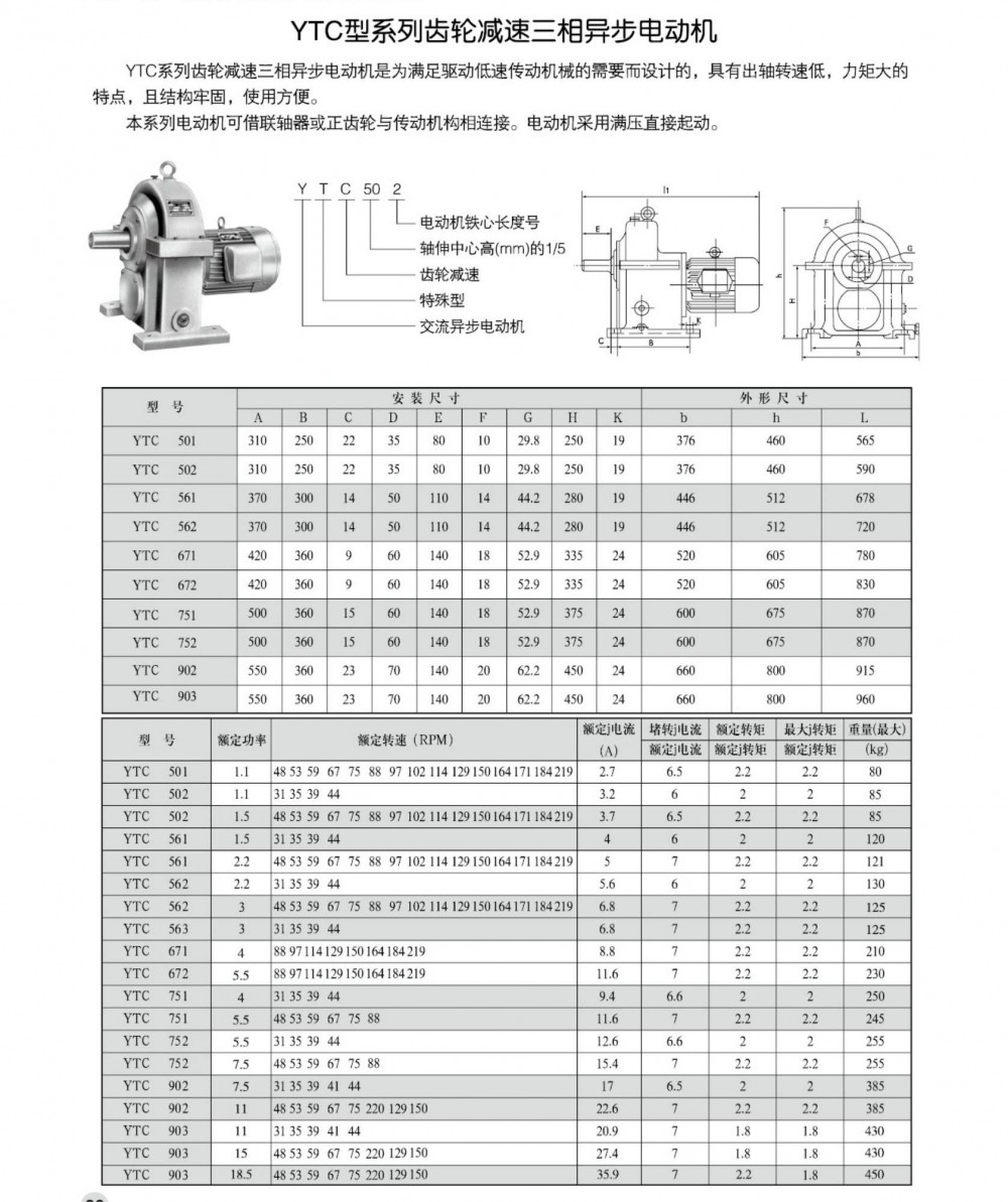 YTC型系列齿轮减速三相异步电动机