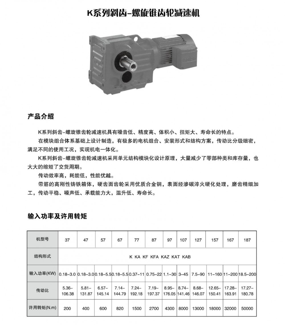 • 产品分类: K系列剁齿-螺旋锥齿轮减速机